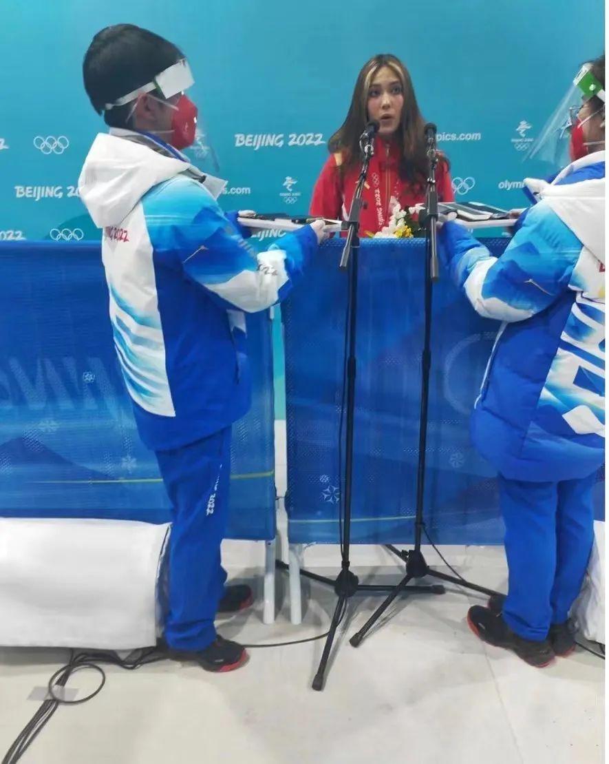 冬奥会对我们大学生而言,是爱国主义教育的实践课程。期间,虽然我没能亲眼看到我们的五星红旗升起,只能通过混采区里的电视转播来一同庆祝,但我亲眼看到我国运动健儿来到我们混采区进行采访。每次为他们引导,端录音笔会有些辛苦,但能为他们服务我已经感到非常骄傲了。