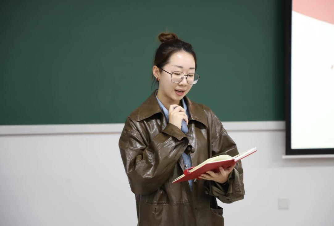 活动第三项,优秀学生分享经验。曾获我校2023年大学生寒假社会实践活动二等奖的赴北京光爱学校调研“打造有温度的教育,助力孤残困境学生成长”实践团领队刘艳艳同学向大家讲述了自身团队在支教实践过程中遇到的困难与温暖故事,并鼓励同学们好好把握校园资源和机会,在社会实践中“敢想,实干,真体会”。