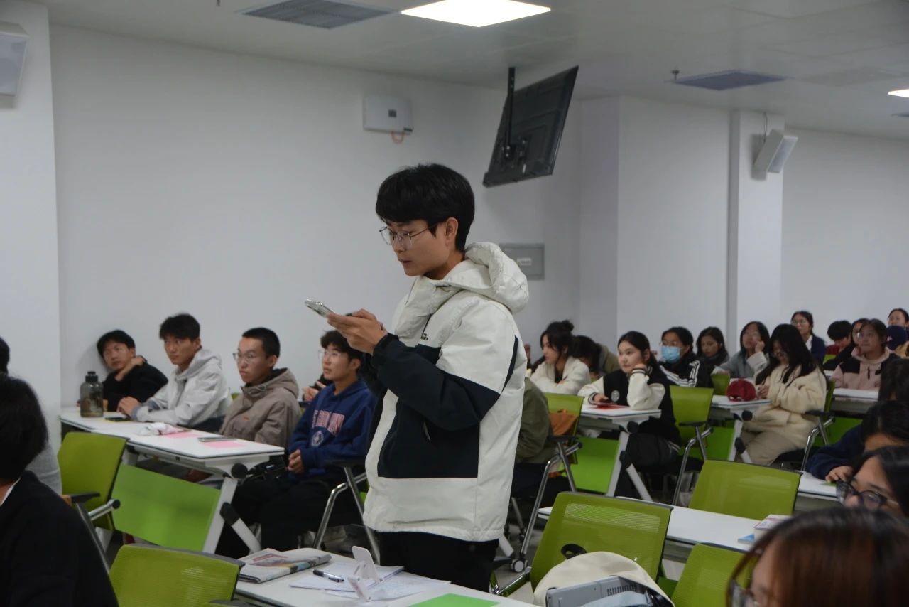 同学们与学长学姐就“应该从哪些方面着手为就业创业做准备”、“如何根据自己的就业创业方向进行选课”等问题进行了互动交流。