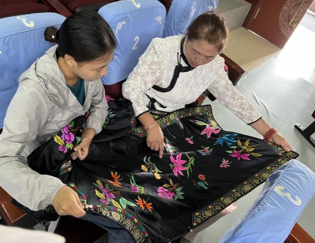 的研究生和本科生,前往内蒙古科右中旗文化和旅游局、科右中旗蒙古族刺绣扶贫车间、蒙古族刺绣展示厅、兴安盟白嘎力职业技术学校、巴彦呼舒第六中学、科右中旗二龙屯和兴龙屯等地进行走访座谈。
