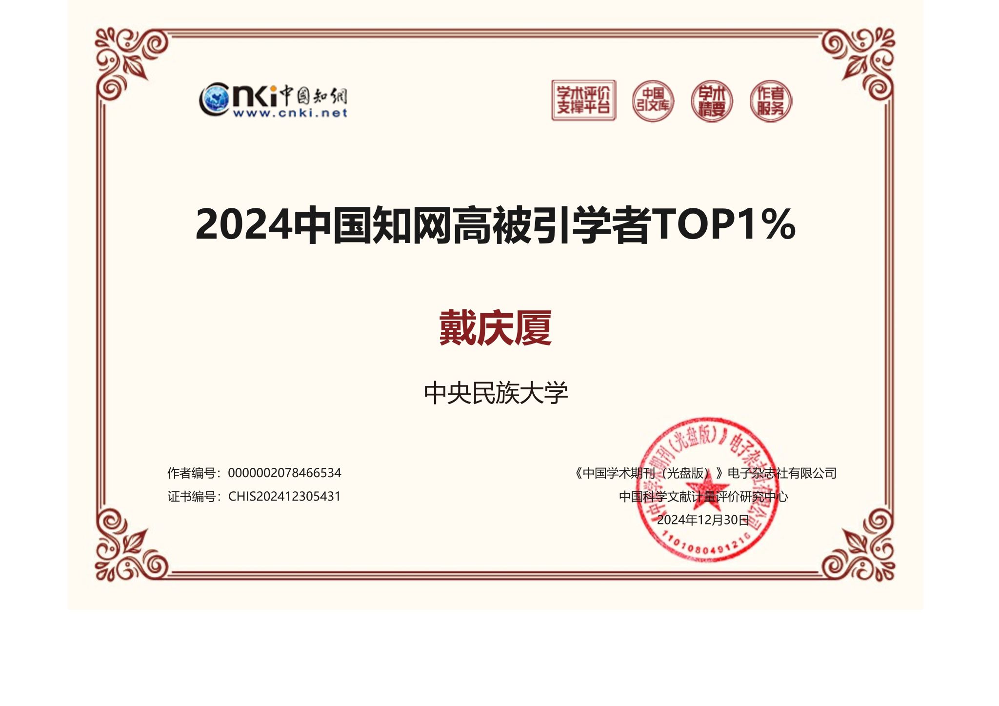 戴庆厦教授、钟进文教授凭借卓越的学术影响力成功入选“2024中国知网中国语言文学高被引学者Top 1%”。