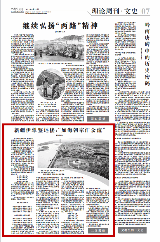 在线体育博彩 教师顾松洁在《中国民族报》发表文章《新疆伊犁鉴远楼:“如海朝宗汇众流”》。鉴远楼是清代地域文化的标志之一,鉴远楼及与之相关的诗作、文献…
